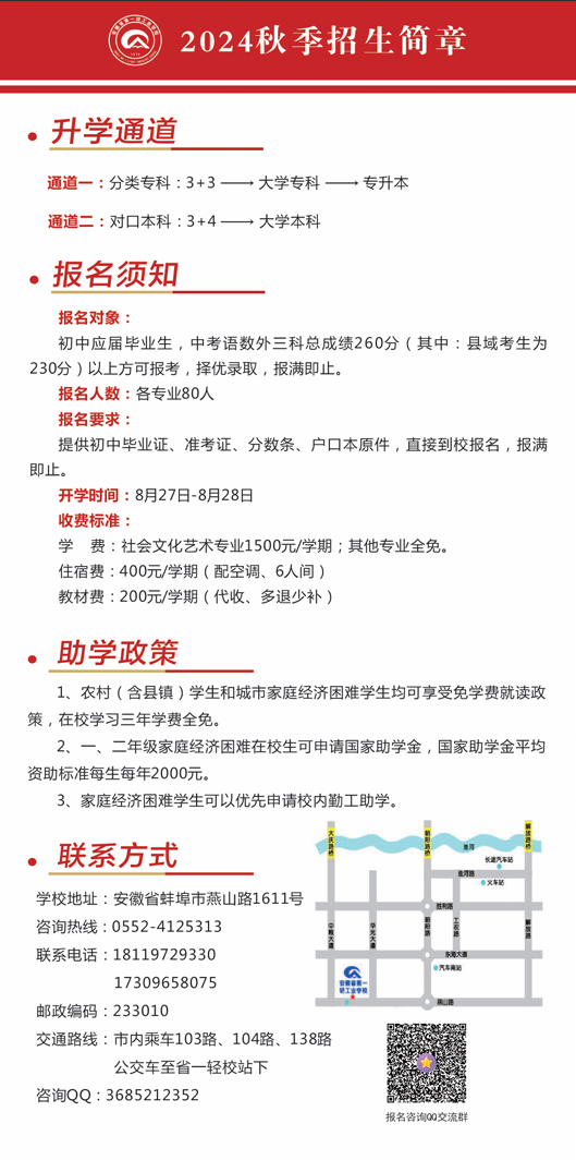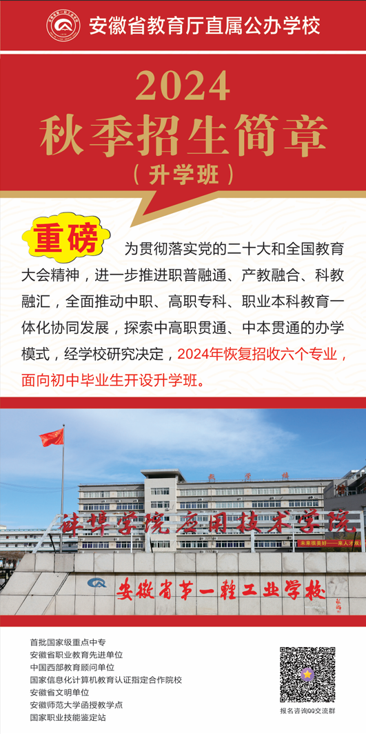 安徽省第一轻工业学校2024年秋季招生简章