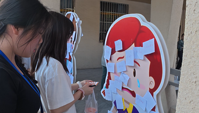 “心有灵犀话衷肠”:互动游戏增情谊。温馨与欢乐在此区域弥漫。在“你画我猜”的游戏中,参与者们以生动的描绘,考验着彼此的默契,引发阵阵欢笑;“真心话大冒险”环节,同学们在轻松愉快的氛围中分享趣事、倾诉心声,有效拉近了彼此距离,深化了同窗情谊;在心理解压区,心理社的同学们设置了丰富的题库和礼品,现场同学可以通过回答心理问题来获得礼品;形式新颖的“撕标签”活动,让同学们用新的语言代替负面标签内容,教会同学们从另一个角度看待负面情绪;巧手串珠活动则为学生们提供了舒缓情绪、放松心灵的场所。