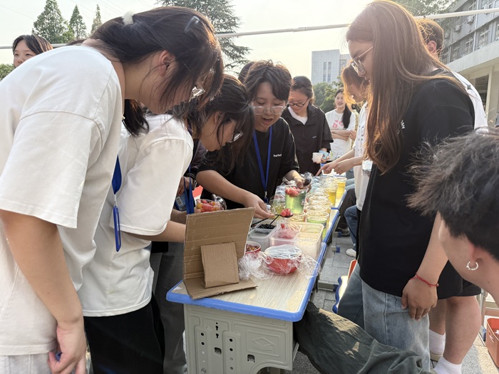 “巧夺天工造物华”:巧手匠心承非遗。这里是一片创意与技艺的天地。同学们纷纷化身“手艺人”,沉浸在传统手工艺的魅力中。在端午香囊售卖区,辩论社的同学们精心挑选布料,巧手缝制,填充艾草香料,一件件寓意吉祥、香气四溢的香囊跃然掌中;在手工编织区域,话剧社的同学用飞舞的指尖,将五彩丝线变幻出精美的绳结与图案;手工饰品制作区,同学们巧妙运用珠子、线绳、花瓣等材料,创作出独一无二的项链、手链、发簪等饰品;在美食畅享区,本科食品专业的同学们,充分发挥专业特色,制作出一份份色香味俱全的蛋挞、饼干、蛋糕、冰粉等,受到了现场师生们的一致好评。每一件作品都凝聚着智慧与匠心,是对传统工艺的生动传承与创新表达。
