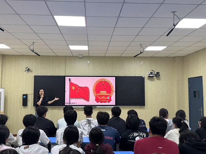 在国旗班特色教育环节,学校在晚自习精心安排了丰富且意义深刻的课程。张舒老师带来的国歌学习教育,以专业的音乐知识对国歌的节奏、歌词进行了深度剖析,同时引出国徽、国旗相关知识的讲解,为国旗班成员讲述国歌、国徽、国旗背后蕴含的国家精神。杨琼老师在国旗班开展了国防知识教育课程,以自身的军旅生涯向同学们普及国防建设的重要性、我国国防力量的发展历程以及现代国防面临的挑战。