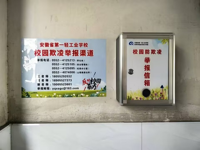 同时,学校结合实际制定《校园防欺凌安全指南》,明确欺凌识别、处置流程及学生自我保护方法;在教学楼、宿舍楼等公共区域醒目位置张贴防欺凌举报电话,同步在教学楼大厅装订专用举报信箱,为学生提供便捷、安全的反馈渠道;同步印发《校园防欺凌告家长书》,向家长告知校园欺凌危害与学校工作举措,引导家长共同参与防欺凌工作,构建家校协同防护网络。