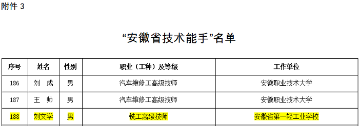 近日,从省人社厅传来喜讯,在2025年安徽省技能人才工作评选表彰中,安徽省第一轻工业学校函授培训处荣获“安徽省技能人才培育工作先进单位”称号,刘文学老师获评“安徽省技术能手”,这是对学校长期以来深耕技能人才培养、落实“岗课赛证”全链条培养体系的充分肯定。