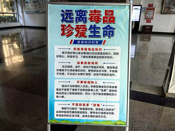 海报横幅 “立体化” 覆盖,营造浓厚氛围。校园关键位置悬挂禁毒横幅、张贴宣传海报,内容涵盖毒品危害与防毒技巧,形式直观易懂。该校德育处表示,此举让禁毒理念渗透校园各处,助力形成全员参与禁毒的良好氛围。