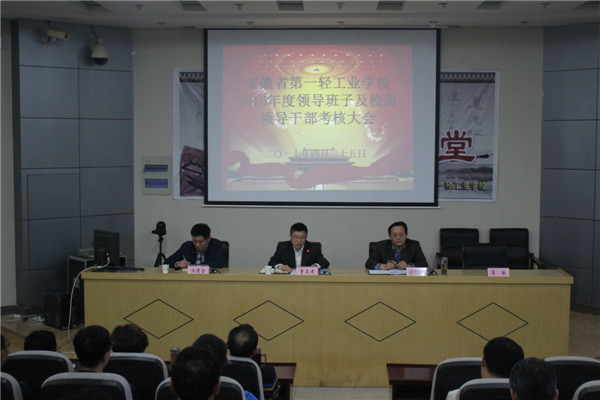 4月25日,我校在学术报告厅举行了2016年度领导班子及校级领导干部考核大会。省教育厅考核组人事处副调研员曹玉建、职成处副调研员汪德金出席会议,学校领导班子成员、副科级以上干部、中级以上职称人员参加了述职大会,大会由校长谢红祥主持。