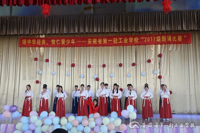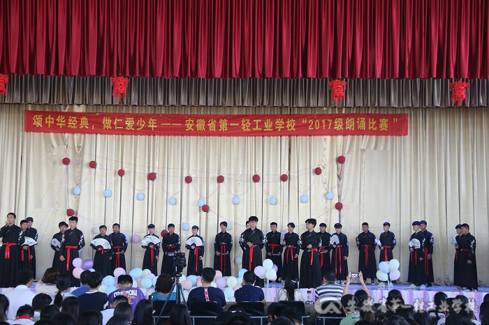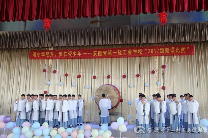 此次朗诵会是月“感恩、仁爱、责任”主题教育的重要内容之一。17级全体师生,共计13个班级参加了比赛。同学们诵读了《短歌行》《三字经》《水调歌头》《我的祖国》等经典名篇。他们用诵读、吟唱、舞蹈、手鼓、大鼓等丰富多彩的形式将中华经典诠释得声情并茂,给全校师生呈上了一场视听盛宴,使同学们真切感悟到经典之美,文化之美。