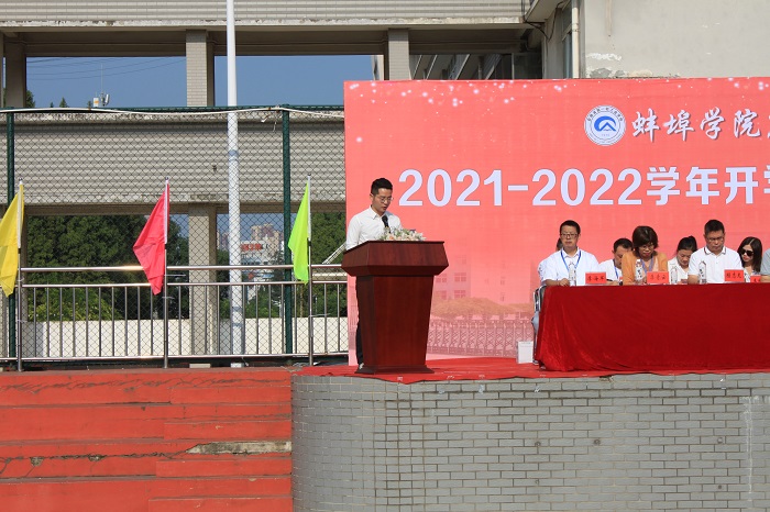 开学典礼在雄壮有力的国歌声中拉开序幕。师生代表分别发言,送上祝福、提出希望、表达决心。教师代表李运会老师深情寄语同学们树立远大理想,明确发展目标,立德修身,勤学苦练,努力把自己培养成为一个“优秀创新”的学生。2020级王军琪同学分享了大学励志生活点滴,并希望学弟学妹们,珍惜大学美好时光,把握人生、创造生活、实现理想。新生代表李婉婷表示,2021级的同学们将用专心做桨,用坚持做帆,在新生活中乘风破浪,砥砺前行,并保证在军训过程中努力向军人学习,学习他们的好思想、好作风、好品德,发扬不怕苦、不怕累的精神,自觉磨练意志、增强体质,顺利完成军训任务。