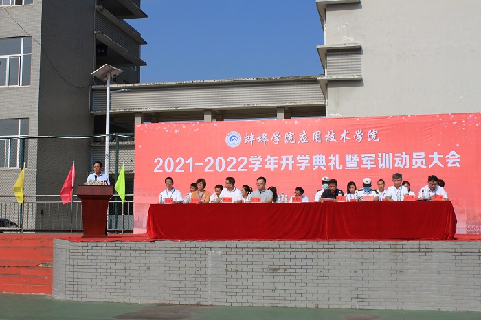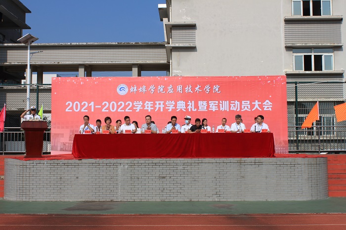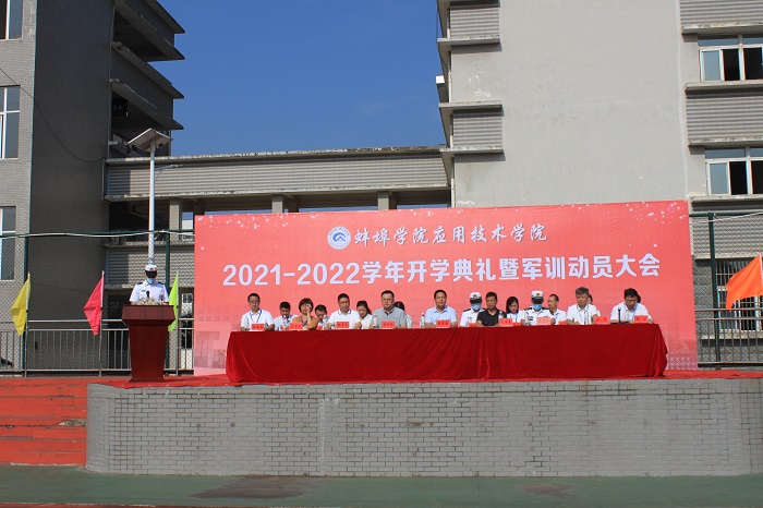 9月16日,应用技术学院举行新学年开学典礼暨军训动员大会。蚌埠学院副院长郭有强、学生处处长刘华军、教务处副处长李声锋,海军士官学校二大队大队长余宽平、指导员崔祥云,应用技术学院、安徽省第一轻工业学校领导程志龙、方军、李青云、李海军、韩永国出席典礼。应用技术学院、安徽省第一轻工业学校相关处室和系部负责人,全体参训学生及辅导员参加典礼。典礼由安徽省第一轻工业学校党委委员、副校长邵龙主持。