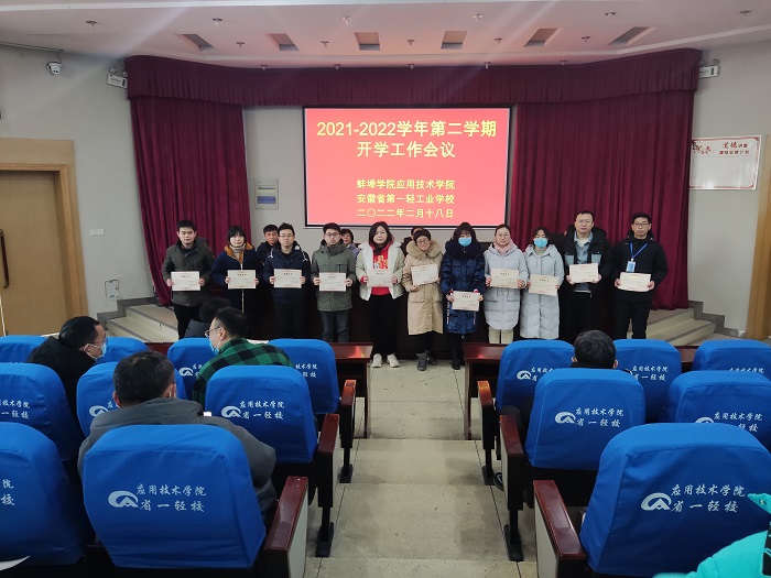 会上方军通报表扬了在上学年工作中表现突出的教职工,并举行了颁奖仪式。本次颁奖包括2020-2021学年“蚌埠市优秀班主任”、“蚌埠市先进班集体”、校级优秀教学教案比赛、校级课程思政教学设计比赛、校级优质课教学比赛、校级优秀教学课件比赛、校级优秀实习指导教师七个奖项,颁奖结束后,学校对新进的五名新进教师进行了“青蓝工程”的结对,并为指导老师颁发了聘书。