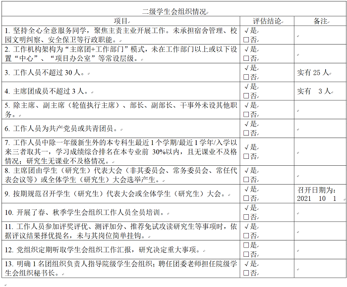 为落实共青团中央、教育部、全国学联联合下发的《关于推动高校学生会(研究生会)深化改革的若干意见》,接受广大师生监督,现将我院截至2021年11月学生会(研究生会)改革情况公开如下。
