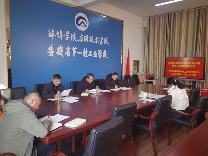12 月 26 日,安徽省第一轻工业学校党委理论学习中心组在三楼会议室召开了 2024 年第十三次集中学习会,会议由党委书记史毓新主持,中心组成员、各党支部书记参加。