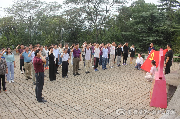 在烈士英雄纪念碑前,全体党员唱起中华人民共和国国歌,并向烈士纪念碑敬献花圈。在校党委书记谢红祥的带领下,全体党员重温入党誓词。宣誓后,全体党员排队绕行革命烈士纪念碑一周。在庄严肃穆的纪念碑下,党员们迈着坚实的步伐,更加坚定了作为党员的责任和义务,更加明确了一名党员怎样的继承和发扬光荣革命传统,肩负起时代赋予的使命。