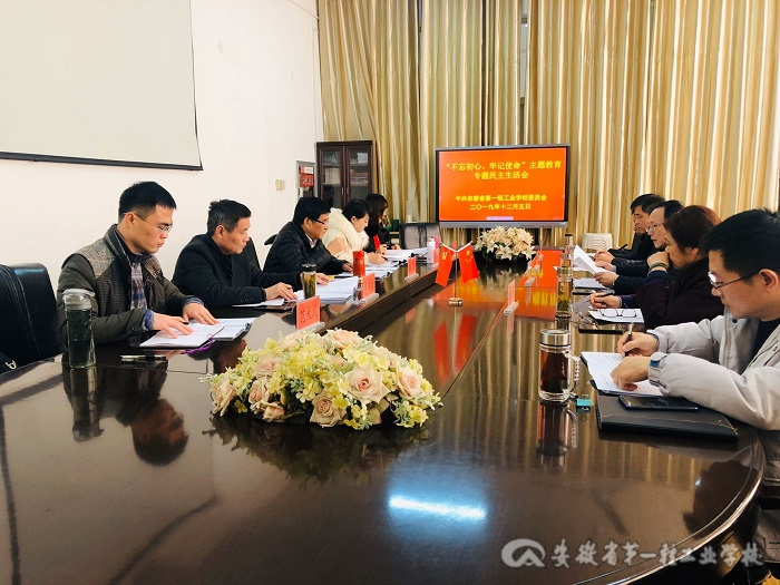 安徽省第一轻工业学校党委高度重视开好此次专题民主生活会,会前认真研究制定方案,开展了专题理论学习,深入学习领会习近平新时代中国特色社会主义思想以及党的十九届四中全会精神,严格对照党章、《准则》和《条例》,深入查找剖析问题,通过谈心谈话、座谈会、发文征求、设立意见箱等多种方式广泛征求意见,认真撰写班子和个人检视剖析材料,为开好专题民主生活会作了充分准备。