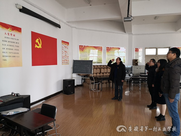 1月13日,我校党委在党员活动室举行了预备党员入党宣誓仪式,学校党委书记谢红祥、3名预备党员及相关支部书记参加了入党宣誓仪式。