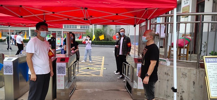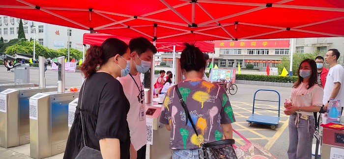 早上7:00,党员志愿者们便已早早就位,在学校的大门口迎接学生们的到来。他们主要负责现场学生引导,秩序维护,审核健康码、行程码,引导学生进入测体温区,还热心地为学生们运送行李,保障了学校开学工作的有序进行。因开学当天家长不能陪同进校,党员志愿者们还热情耐心地解答家长们的疑问,获得了家长和新生们的好评。