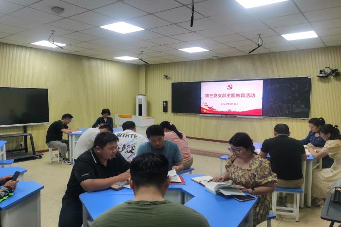 6月9日下午,第三党支部在智慧教室开展“建设教育强国”专题学习,会议由支部组织委员袁锋同志主持。