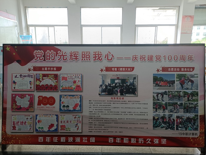 各班级展板设计新颖、活泼、生动,内容丰富多彩,有历史故事、有诗歌、有漫画,从不同角度反映了中国共产党建党100周年的历史、以及各族人民取得的丰功伟绩。