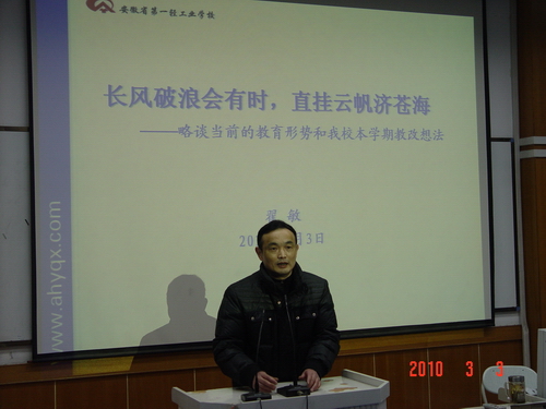 此次会议为新学期教务工作指明了前进方向,对青年教师提出了更高更具体的要求。相信新的学期里,在全体轻校老师的共同努力下,安徽省第一轻工业学校的教务工作一定会取得更多更好的成绩。 教务处供稿