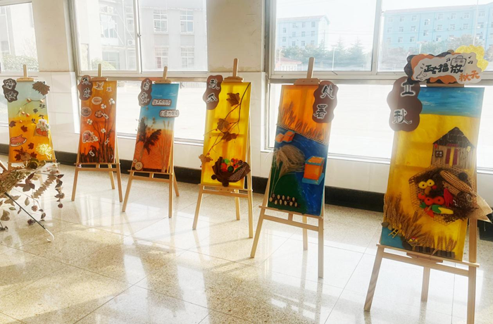 本次展览围绕“秋天”为主题进行环境创设,结合节气进行创意探索,如秋天天气变凉、树叶变黄、果实成熟等创意实践。在提升学生动手能力的同时,培养学生的观察力和思维能力。