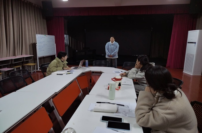此次考前培训分为集中培训和分组培训两个环节,由胡爽和杨琼两位教师承担。25日晚,杨琼老师在学术报告厅对面试流程及注意事项进行集中讲授,之后分12组由两位教师对培训学生进行分组培训。