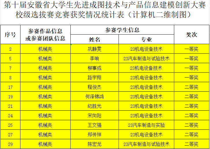 近日,由蚌埠学院机械与车辆工程学院主办的第十届大学生先进成图竞赛暨“2025年安徽省大学生先进成图技术与产品信息建模创新大赛”选拔赛顺利举行。来自全院各专业的百余名学生围绕机械类计算机二维制图赛道展开激烈比拼,应用技术学院工业工程系11名参赛选手凭借扎实的专业功底和出色的临场发挥,斩获一等奖4项、二等奖7项,以100%获奖率刷新了我院在该赛事的历史最佳战绩。
