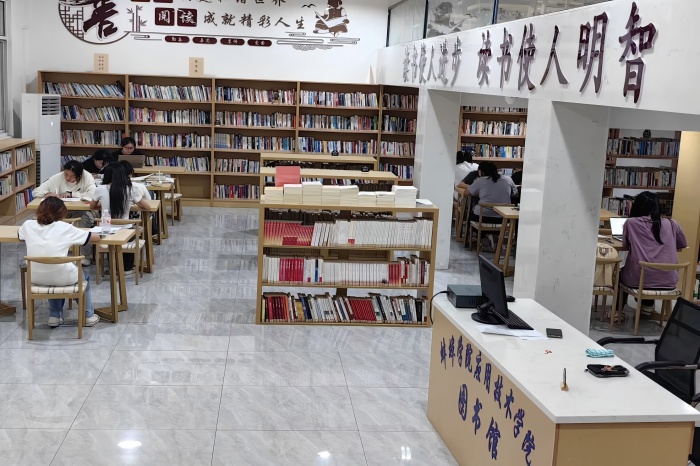校园里,人头攒动,满是笑语欢声,而图书馆却是安静如旧。同学们或低头看书写题,或指尖轻敲键盘,或戴着耳机认真听着网课。