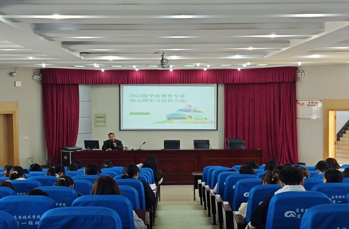 为助力 2023 级学前教育专业学生明晰幼儿园跟岗实习内容与规范,10 月 24 日,教育系召开了幼儿园跟岗实习动员大会。系副主任胡爽作动员讲话,2023级学前教育专业全体学生参加会议。