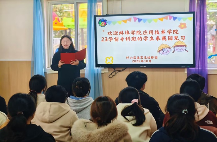 为进一步提升学前教育专业学生的职业适应力与综合素养,10月27日至12月5日,23级学前教育专业三个班级前往蚌山区美思达幼儿园、九色鹿幼儿园百合分园进行跟岗实习,通过参与幼儿园一日生活与保教工作,达成专业理论与实践深度衔接。