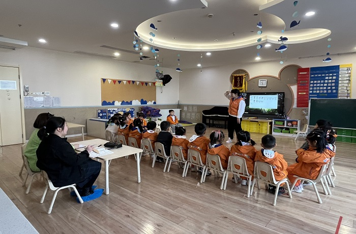 吉的堡幼儿园英语教师为大家展示了一堂大班英语课,通过阅读英文主题绘本,练习日常对话的方式,培养孩子的语感;用字母读写教材,培养孩子英语纯正发音。特色明显、互动充分的课堂给大家留下了深刻印象。