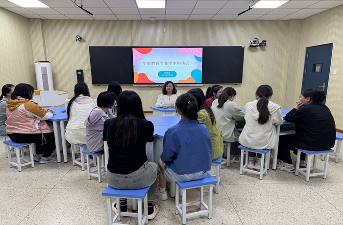 为进一步加强师生间沟通交流,对学生进行专业发展规划,5月7日和5月9日下午,教育系在智慧教室组织以“明确发展方向,做好专业规划”为主题的学前教育专业学生座谈活动,活动由教育系主任王超男主持,22级和23级学前教育专业各班级学生代表参加。