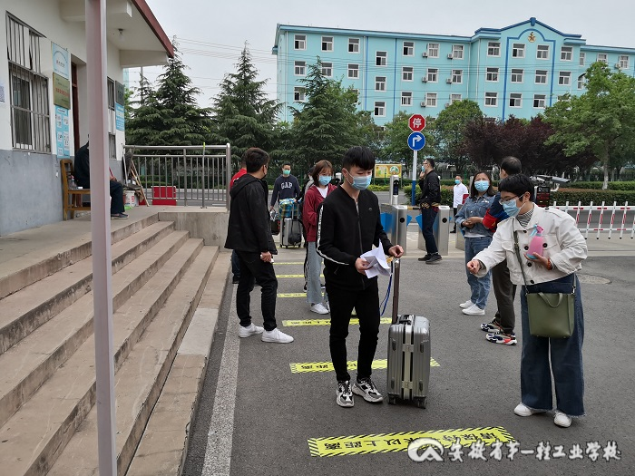 5月6日,我校第一批学生返校复课。他们戴着口罩,拉着行李,按1米间距有序排队接受体温检测、交验健康证明、承诺书等材料。体温正常的学生按指定路线进入各自宿舍,体温不正常的按学校事先制定的应急预案进行处置。各班主任对学生的报到情况及时进行统计,并帮助学生解决各种困难。同时,学校的党员志愿者们也纷纷加入了迎接学生报到的队伍中来。