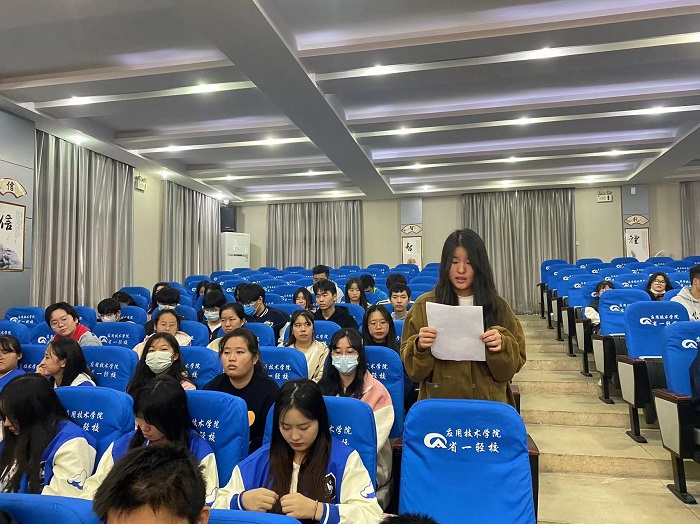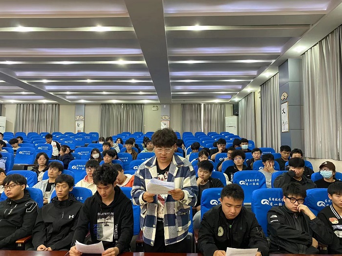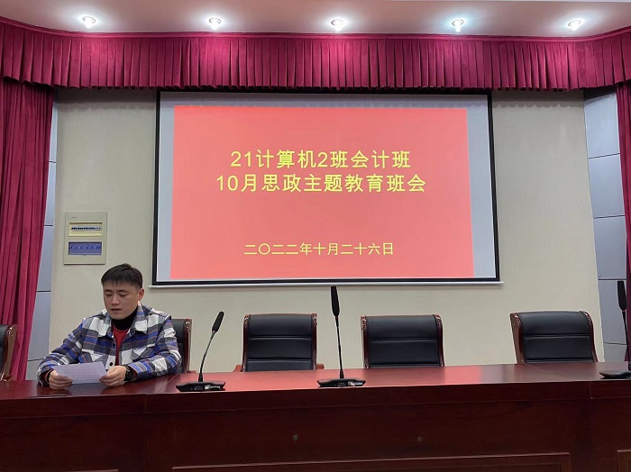 为深入学习党的二十大精神,进一步加强大学生思想政治教育。21会计1、2班,21计算机2班于10月26日在学术报告厅开展“学习二十大,永远跟党走,奋进新征程”主题班会。会议由班主任李运会主持,辅助班主任韩云涛出席会议,班级全体学生参加会议。