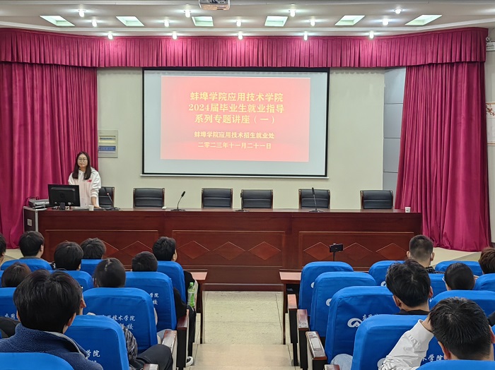 为深入贯彻落实国家促进高校毕业生就业工作,提前布局2024届毕业生实习就业,11月21日至12月6日,蚌埠学院应用技术学院开展了2024届毕业生就业实习指导系列专题讲座。本次讲座旨在帮助2024届毕业生提前了解就业形势、增强择业意识、做好就业规划,以此达到助推毕业生更高质量就业的目的,2024届全体毕业生参加了系列讲座。