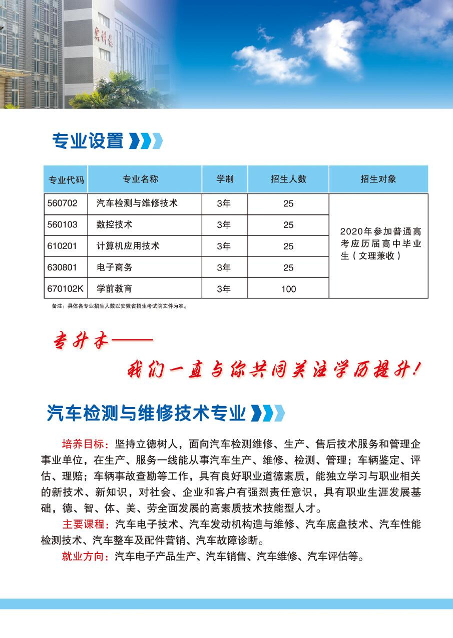 蚌埠学院应用技术学院2020招生简章