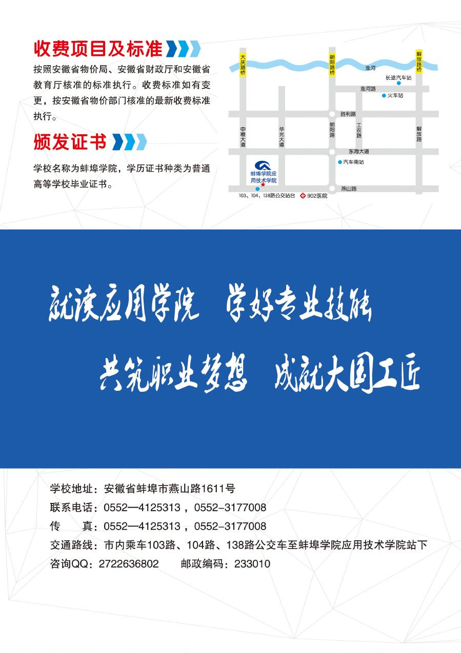 学校地址:安徽省蚌埠市燕山路1611号    通讯地址:安徽省蚌埠市燕山路1611号