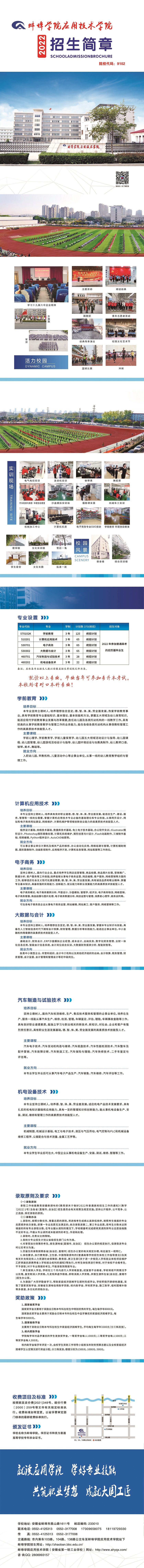 蚌埠学院应用技术学院2022年专科招生简章