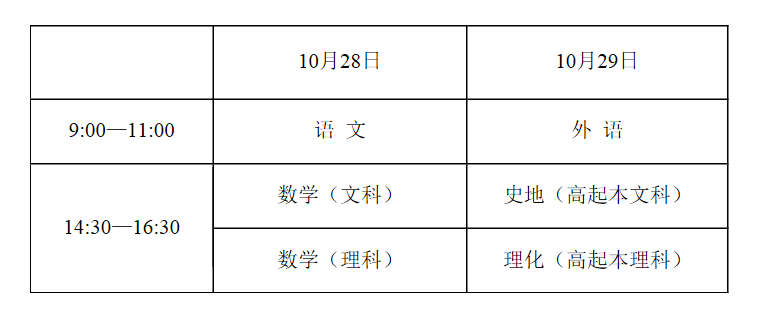高中起点升本、专科考试时间表