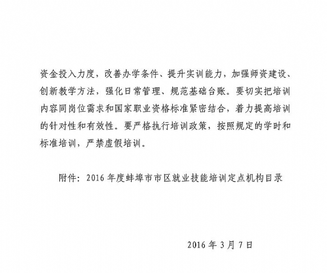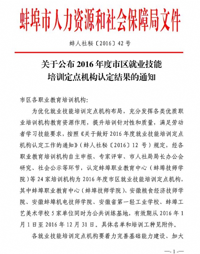 我校为2016年就业技能培训定点机构