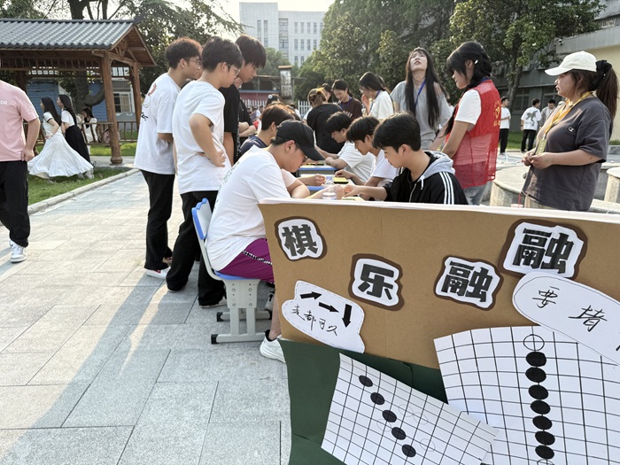 “智勇双全竞风流”:竞技比拼展风采。这里是智慧与勇气的试炼场。源自古代礼仪的投壶比赛现场,同学们凝神静气,手持羽箭,瞄准壶口。每一次精准投入都赢得围观者的喝彩;“四仪踏云”活动不仅考验参与者的平衡感与默契度,其名称更暗含对传统礼仪的敬意与对美好生活的向往,同学们步履轻快,现场妙趣横生;结合端午驱邪避害传统的“射五毒”比赛人气高涨。同学们以特制“弓箭”瞄准画有蛇、蝎、蜈蚣、壁虎、蟾蜍图案的标靶射箭。每一次“命中”,都寄托着大家对祛除病害、祈求健康的美好愿望,现场气氛热烈欢腾;在考验耐心与手部精细动作的夹红豆比赛中,选手们屏息凝神,用细长的筷子在限定时间内争分夺秒地将圆润的红豆夹入指定容器。方寸之间,尽显专注与技巧,紧张而专注的氛围感染着每一位参与者。类似的还有双拍持球、趣味保龄球、套圈、趾压板跳绳、五子棋、沙包投掷等比赛,让同学们在欢声笑语中深化友谊,增强了集体归属感。这些游戏项目考验着现场同学们的团队协作与身体素质。参赛同学们全情投入,默契配合,为集体荣誉奋力拼搏。紧张激烈的角逐中,加油呐喊声此起彼伏,青春的活力与激情在此刻尽情释放。