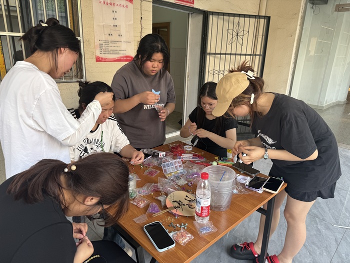 “心有灵犀话衷肠”:互动游戏增情谊。温馨与欢乐在此区域弥漫。在“你画我猜”的游戏中,参与者们以生动的描绘,考验着彼此的默契,引发阵阵欢笑;“真心话大冒险”环节,同学们在轻松愉快的氛围中分享趣事、倾诉心声,有效拉近了彼此距离,深化了同窗情谊;在心理解压区,心理社的同学们设置了丰富的题库和礼品,现场同学可以通过回答心理问题来获得礼品;形式新颖的“撕标签”活动,让同学们用新的语言代替负面标签内容,教会同学们从另一个角度看待负面情绪;巧手串珠活动则为学生们提供了舒缓情绪、放松心灵的场所。