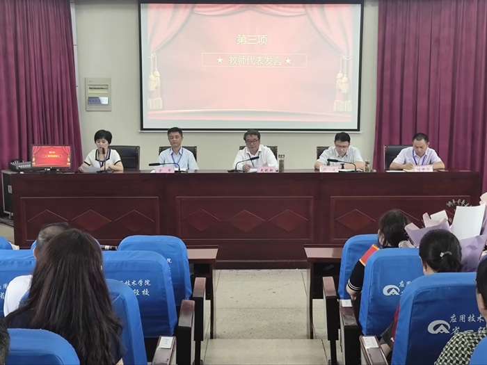 校领导向全校教职工致以节日的问候和崇高的敬意。会议充分肯定了过去一学年学校在教育教学、技能竞赛、师资队伍建设等方面取得的优异成绩,强调全体教职工要牢记总书记嘱托,以“四有”好老师标准、“四个引路人”和“四个相统一”要求为指引,坚定理想信念、涵养师德师风、提升育人智慧、锤炼专业本领、永葆仁爱之心,持续培养高素质技术技能人才,将教育家精神融入教育教学全过程,努力培养更多高素质技术技能人才,为建设教育强国提供有力支撑。