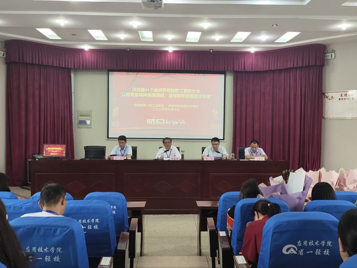 秋韵荡漾,丹桂飘香。9月10日下午,安徽省第一轻工业学校以“以教育家精神铸魂强师,谱写教育强国建设华章”为主题,全体教职工齐聚一堂,共同庆祝第41个教师节,大会由党委书记史毓新主持。