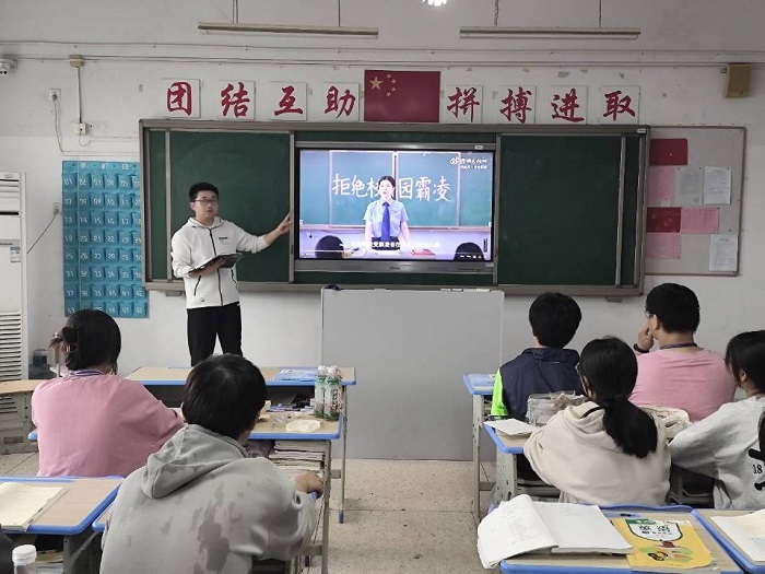 此外,各班级以“拒绝校园欺凌,共建和谐校园”为主题召开班会,班主任通过案例讲解、互动讨论、情景模拟等形式,让学生清晰认识欺凌行为的危害,掌握应对欺凌的正确方式,鼓励学生主动拒绝欺凌、勇敢举报欺凌,营造“人人反欺凌、处处护安全”的班级氛围。