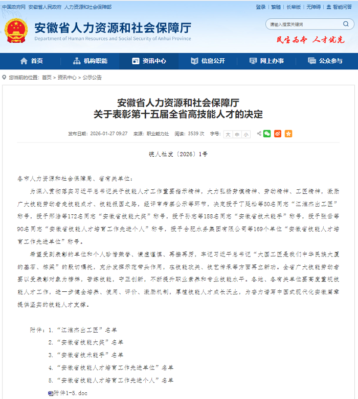 近日,从省人社厅传来喜讯,在2025年安徽省技能人才工作评选表彰中,安徽省第一轻工业学校函授培训处荣获“安徽省技能人才培育工作先进单位”称号,刘文学老师获评“安徽省技术能手”,这是对学校长期以来深耕技能人才培养、落实“岗课赛证”全链条培养体系的充分肯定。