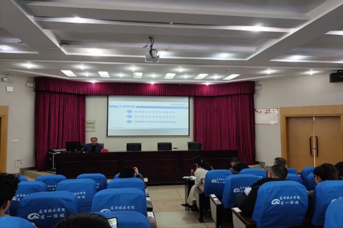 2025年3月19日下午,安徽机电职业技术学院科研处副处长张涛受邀在我校学术报告厅以“打造职业教育产教融合金基地,提升关键办学能力”为题作专题讲座。此次讲座聚焦教育思想大讨论之“职业教育与产业深度融合的创新实践”,会议由教务处主任申琳琳主持。