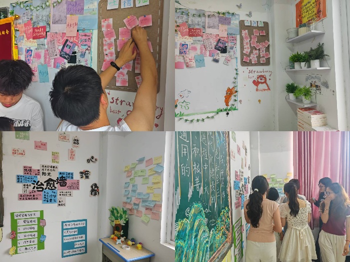 方寸心角筑暖巢,青春密语寄温情。学院积极推进心理角建设,为师生打造了一个个温馨舒适的心灵港湾。心理角内布置了心理学书籍、减压玩具、心灵寄语墙等,同学们可以在这里阅读书籍舒缓压力,写下烦恼倾诉心声,或是与同伴交流分享心情。小小的心理角,成为校园里充满爱与温暖的治愈空间。
