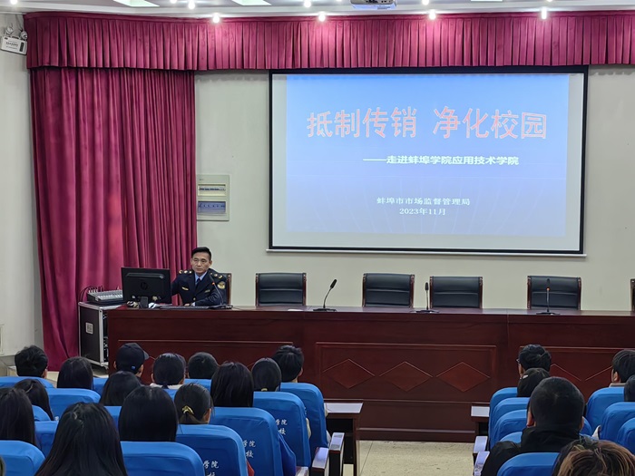 为加强我院学子对传销的防范意识,提高同学们对传销套路的甄别能力。11月16日下午,我院在学术报告厅举行了“抵制传销,净化校园”专题讲座。蚌埠市市场监管局反垄断和反不正当竞争执法科科长苏畅出席了讲座现场,讲座由学生处副主任胡爽主持。