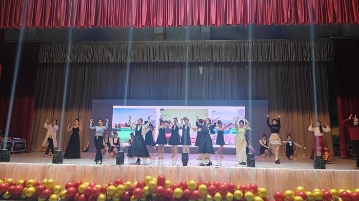 晚会经过前期的精心打磨,用心用情用功为全体师生奉献一场有艺术高度、生活热度、欢乐温度的文化盛宴。主体部分包括了舞蹈、小品、合唱和情景剧等内容和形式的丰富的节目表演。晚会伊始,充满活力的舞蹈串烧和新颖有趣的荧光棒舞《数码宝贝》瞬间点燃了全场气氛。小品《诈骗公司》和《幸生华夏共日月》赢得了现场观众的阵阵掌声和笑声;国风汉服走秀《佳人曲》各式各样的造型,伴随着悠扬的音乐,尽显汉服之美,散发了中华文化的风韵;青春洋溢的舞蹈《你要跳舞吗》将现场气氛推向高潮;合唱歌曲《灯火里的中国》《如愿》更是将青年学子的家国情唱进了内心深处,也唱出了对祖国美好的祝福。情景剧《我们都是青春的主角》、幕布剧《青春再会》回顾了2021级学生坚持拼搏、茁壮成长的经历,充满了校园生活的青春气息。由学生和不同年代教师代表演绎的歌曲串烧,表现不同年代的青春旋律,更象征着我院师生初心不改,代代传承的精神。
