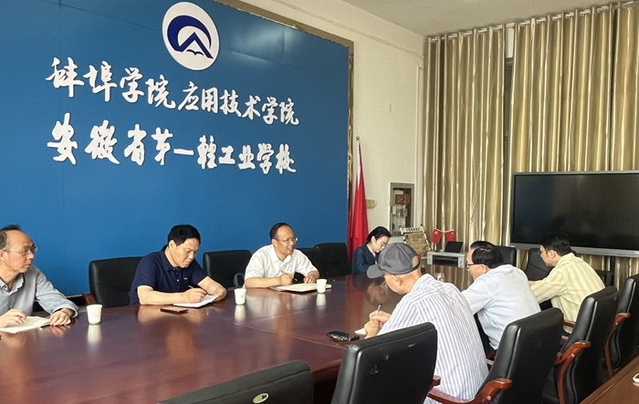 为进一步推进两校深入合作,6月4日上午,蚌埠学院党委副书记、院长孙艳辉,党委委员、副院长郭有强一行到我校开展调研交流,安徽省第一轻工业学校党委书记、校长、应用技术学院院长谢红祥,应用技术学院党总支副书记李大胜以及相关职能部门负责人参加座谈会。