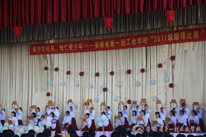 此次朗诵会是月“感恩、仁爱、责任”主题教育的重要内容之一。17级全体师生,共计13个班级参加了比赛。同学们诵读了《短歌行》《三字经》《水调歌头》《我的祖国》等经典名篇。他们用诵读、吟唱、舞蹈、手鼓、大鼓等丰富多彩的形式将中华经典诠释得声情并茂,给全校师生呈上了一场视听盛宴,使同学们真切感悟到经典之美,文化之美。