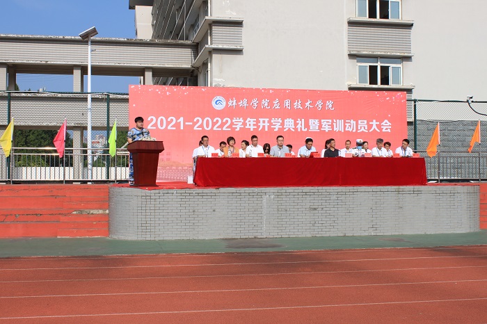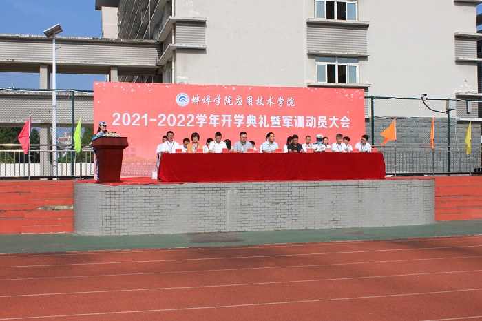 9月16日,应用技术学院举行新学年开学典礼暨军训动员大会。蚌埠学院副院长郭有强、学生处处长刘华军、教务处副处长李声锋,海军士官学校二大队大队长余宽平、指导员崔祥云,应用技术学院、安徽省第一轻工业学校领导程志龙、方军、李青云、李海军、韩永国出席典礼。应用技术学院、安徽省第一轻工业学校相关处室和系部负责人,全体参训学生及辅导员参加典礼。典礼由安徽省第一轻工业学校党委委员、副校长邵龙主持。